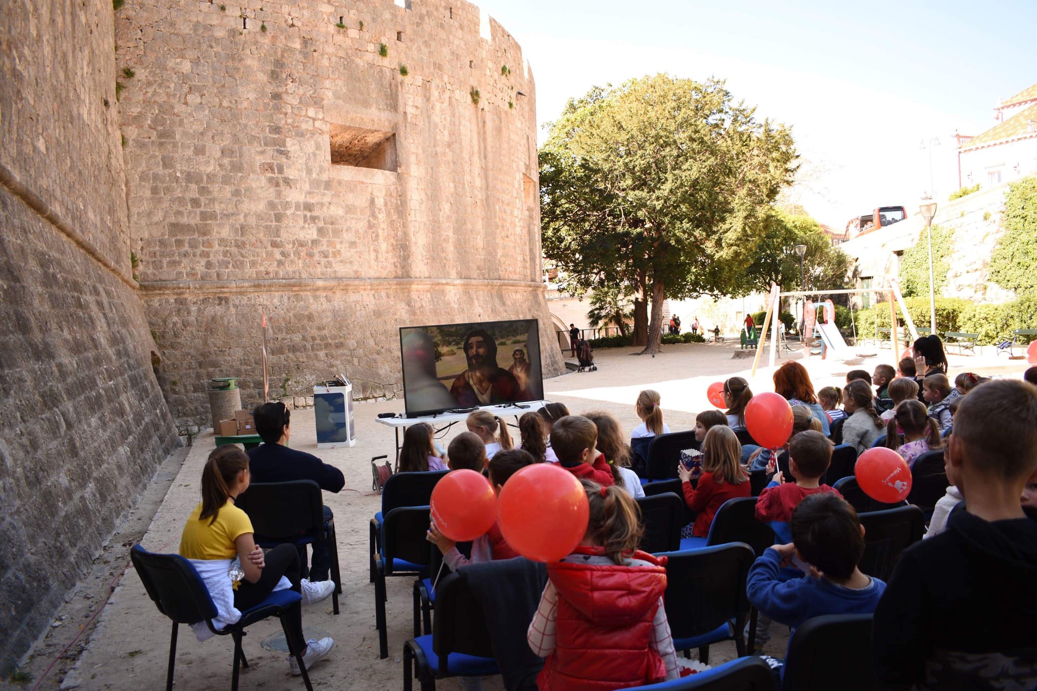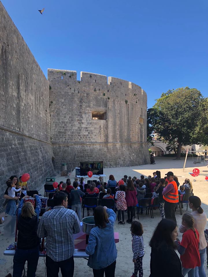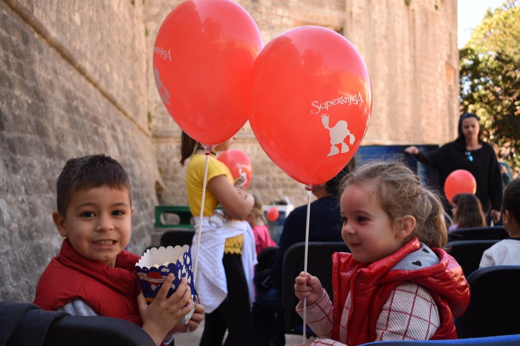 Nakon odgledanog crtića, nastavili smo druženje uz kokice i podjelu balona, kao i neizbježno slikanje s Gizmom. Vrtičke grupe su se zajedno slikale, a bilo je slučajnih malih prolaznika koji nisu propustili priliku slikati se s Gizmom. Ipak, Gizmo nam je po prvi puta u gradu Dubrovniku!