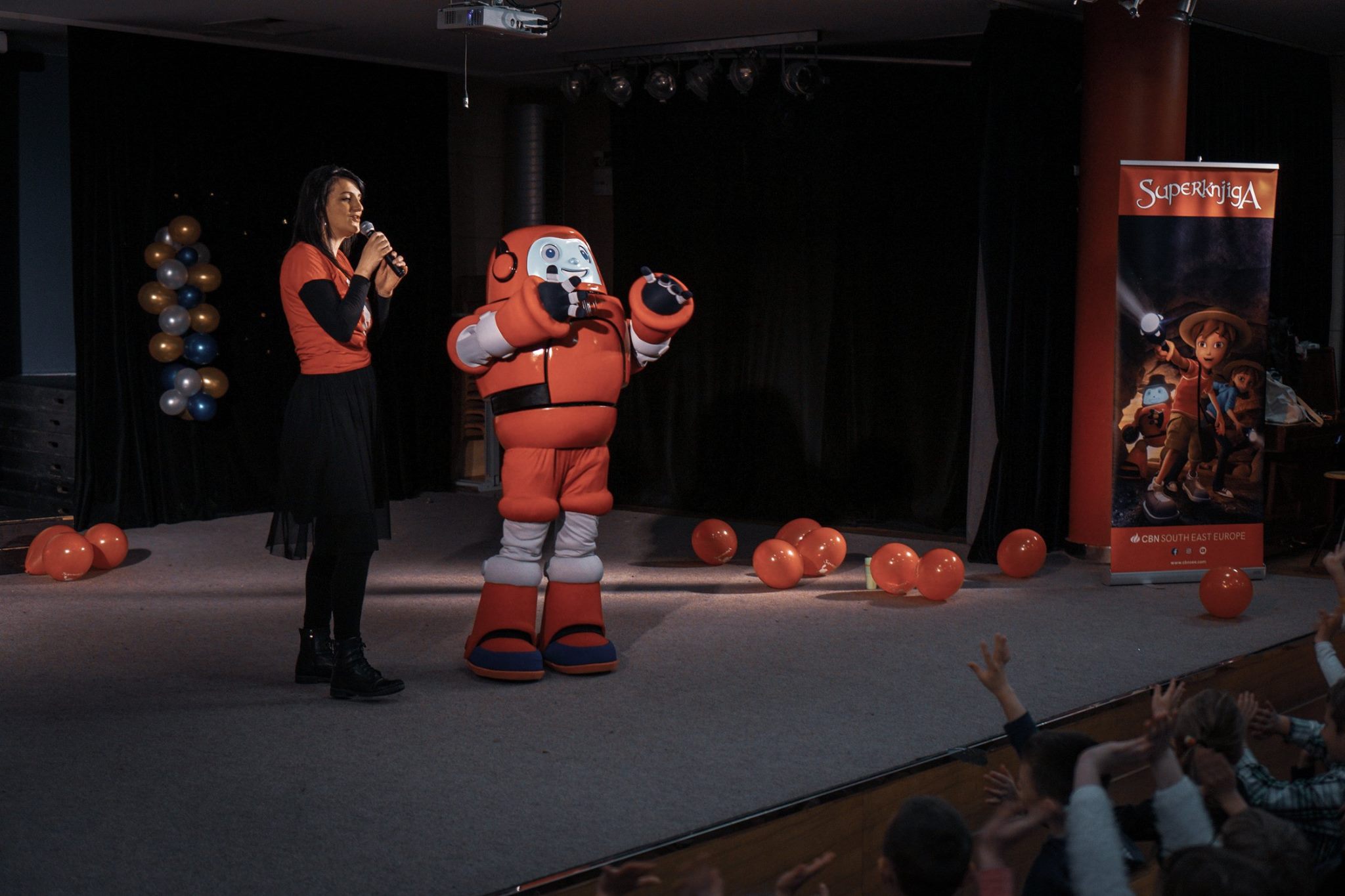 U školskoj kino dvorani okupilo se oko 400 učenika 1. do 5. razreda u sklopu uskršnjeg programa te škole. Atmosfera je bila sjajna! Gromki glasovi uzbuđene djece ispunjavali su dvoranu sve dok se nismo utišali i pogledali crtić. Nakon toga se na pozornici pojavio Gizmo. Izazvao je uzbuđenje, a i sam je bio uzbuđen kada je vidio koliko djece je u dvorani! Zatražio je od njih da zajedno otpjevaju i otplešu njegovu omiljenu „Pjesmu spasenja“. Nekako se uvijek dogodi da na nju, zbog svog vremena putovanja, nikada ne stigne na vrijeme. Djeca su se rado odazvala pa su, nakon kratkog upoznavanja s koracima, vješto otplesala cijelu pjesmu. Gizmo im se, također, uvijek pridruži u tome.